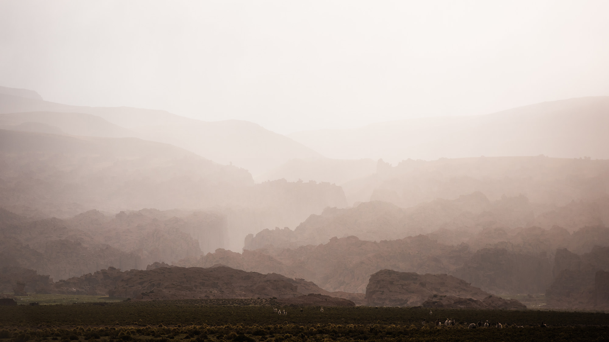 “Onde o deserto mais árido e alto do mundo cruza com a cordilheira dos Andes, e o ar úmido proveniente da Amazônia toca a aridez do deserto, criando cenários surreais, como se centenas de mundos alienígenas convivessem juntos ali. No silêncio do deserto, o cenário muda drasticamente em poucos quilômetros, e somos inundados por sensações, frio extremo e calor extremo convivem em meio a formações rochosas que lembram o solo lunar, deserto de sal, vulcões, montanhas, e lagos de altitude, irrompidos constantemente por ventos, chuva, gelo, neve e tempestades de areia. Ali o silêncio é quebrando somente pelo vôo de centenas de flamingos e vicunhas correndo pelo altiplano atacamense.