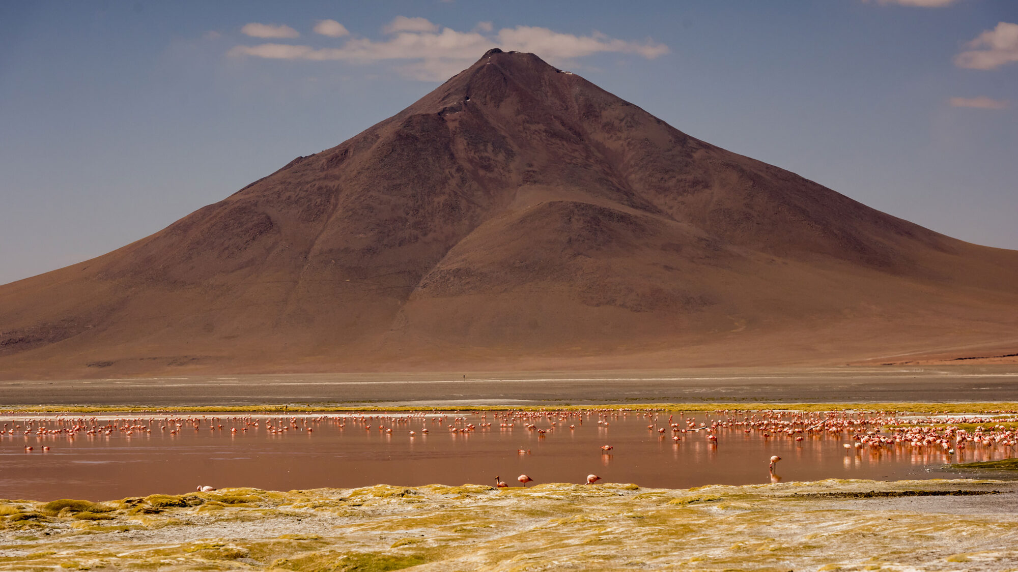DIA 2 – 13 de Setembro – Transfer para a aduana Chilena e em seguida para a aduana Boliviana, saída fotográfica para a Laguna Blanca, Laguna Verde, Deserto de Dali, Termas de Polques e pôr do Sol na Laguna Colorada.