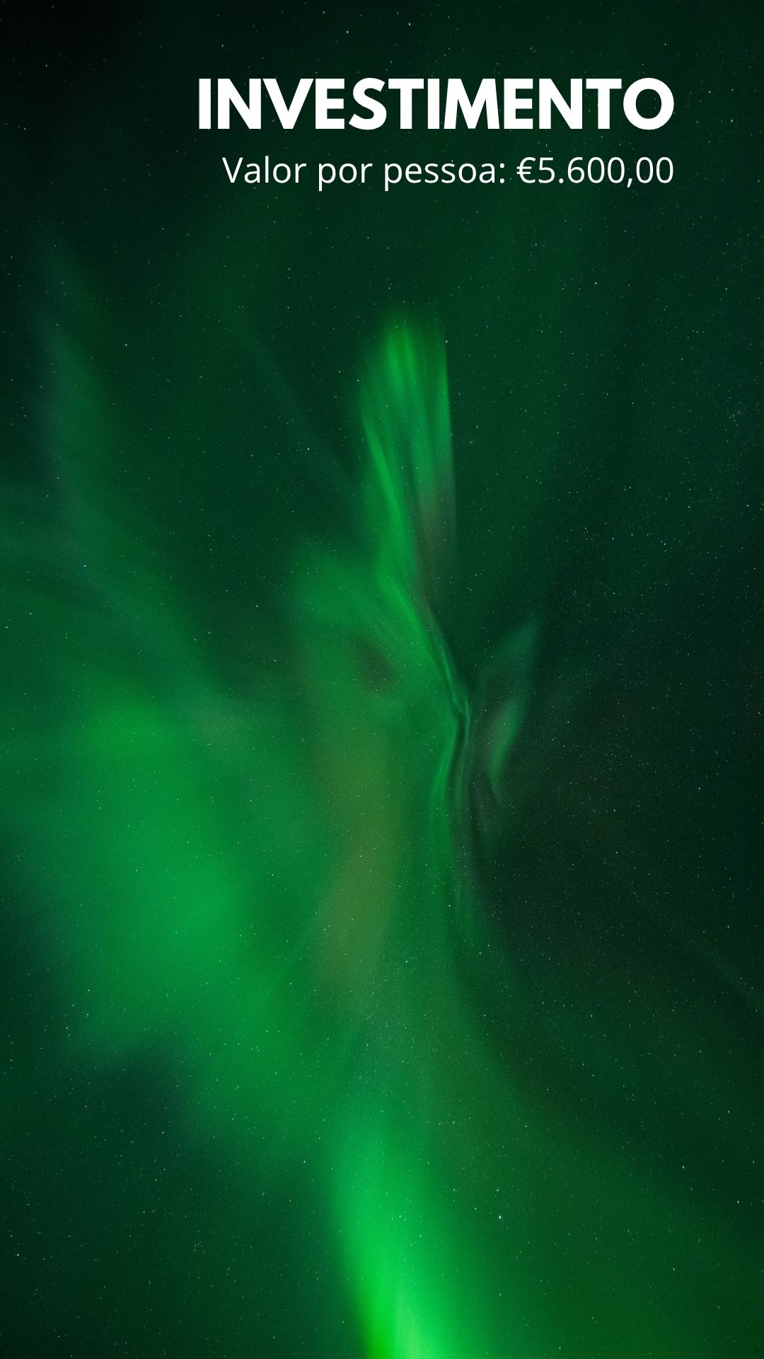• Aurora boreal: trata-se de um fenômeno natural imprevisível. Faremos o possível para presenciá-la, mas não é possível garantir sua aparição, especialmente em noites nubladas.