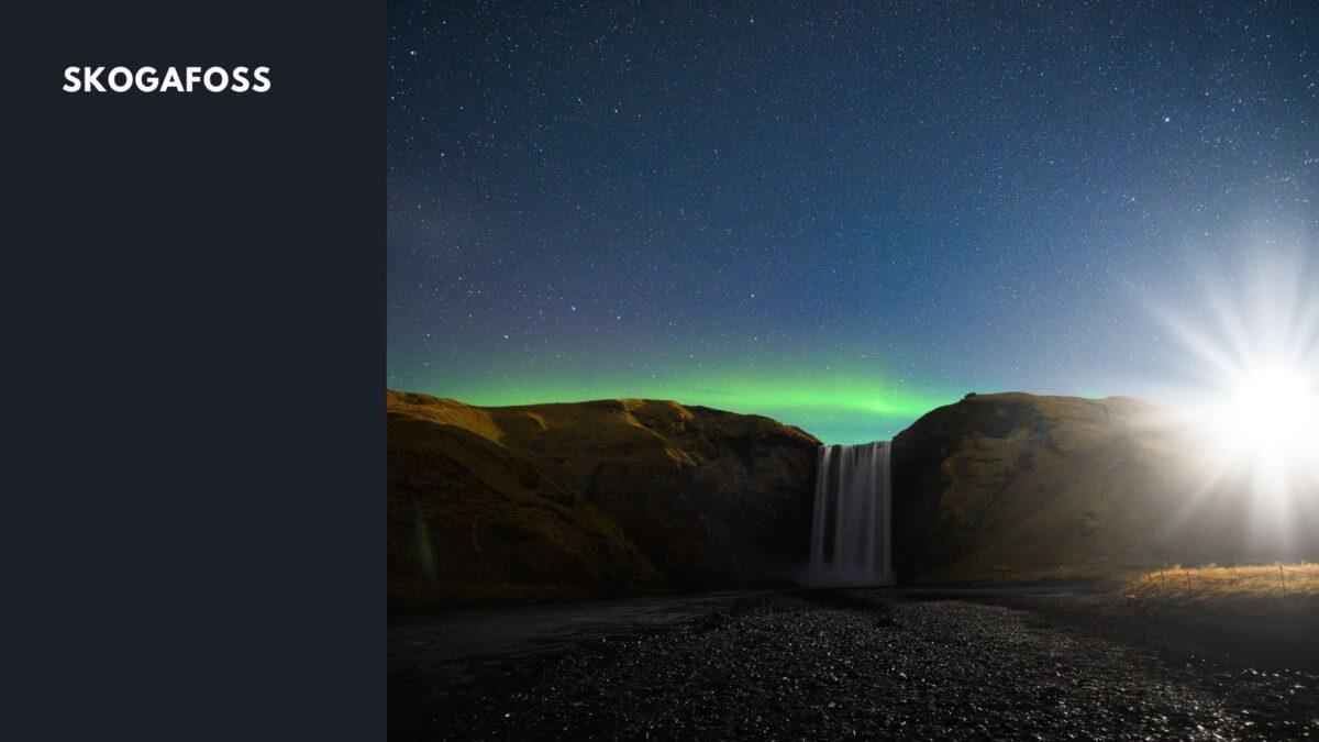 Skógafoss é uma das cachoeiras mais imponentes da Islândia, com 25 metros de largura e uma queda livre de 60 metros. Seu véu de água cria uma cortina majestosa que encanta visitantes e oferece cenários espetaculares para fotografias.